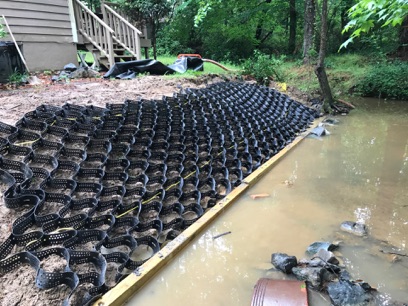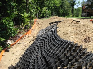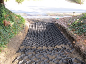 There are so many ways to stabilize areas. much depends on the slope and soil type. Here are some random pictures of past jobs. Just to name a few there are slope/soil stabilization, building a road on a bank, a driveway, vegetated swale, ground protection from roof run off, and greenway path.