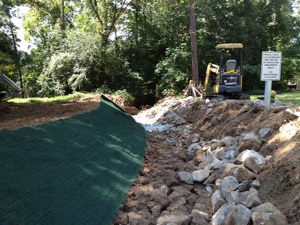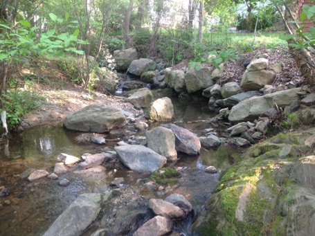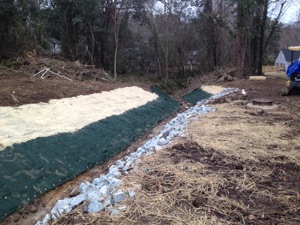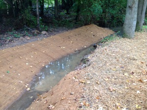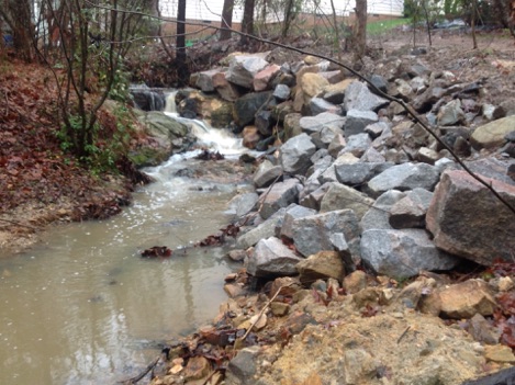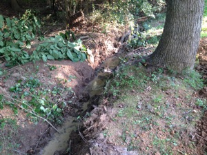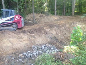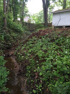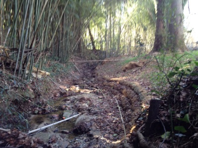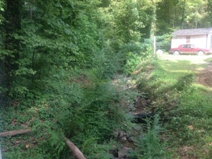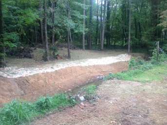 Below are a few pictures of recent restorations. Sometimes I get to a site and can't even see the stream like the pic below and to the left so after a few days of excavation I get to the pic further down. Often difficult to bid a job without really seeing what is there, a big gamble. Many of my jobs are funded by 319 grants from EPA and are given to the CCAP program in the state. A bid done in December may not be completed until the following September. By far the worst part of my job is guessing what actual costs will be at the time of construction.