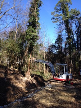 Sometimes it is difficult to bid a job because there is no easy stream access. The job below is one, it was not possible to see what the bank looked like until the day I cut off the vegetation.