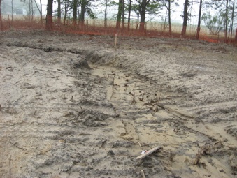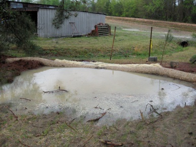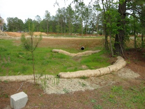 The contractor (Jimmy Daughtry Construction) at the site above contacted me about waddles to help lower his sediment pond clean out costs. I’ll have more pics after a few rains to show how these are working.